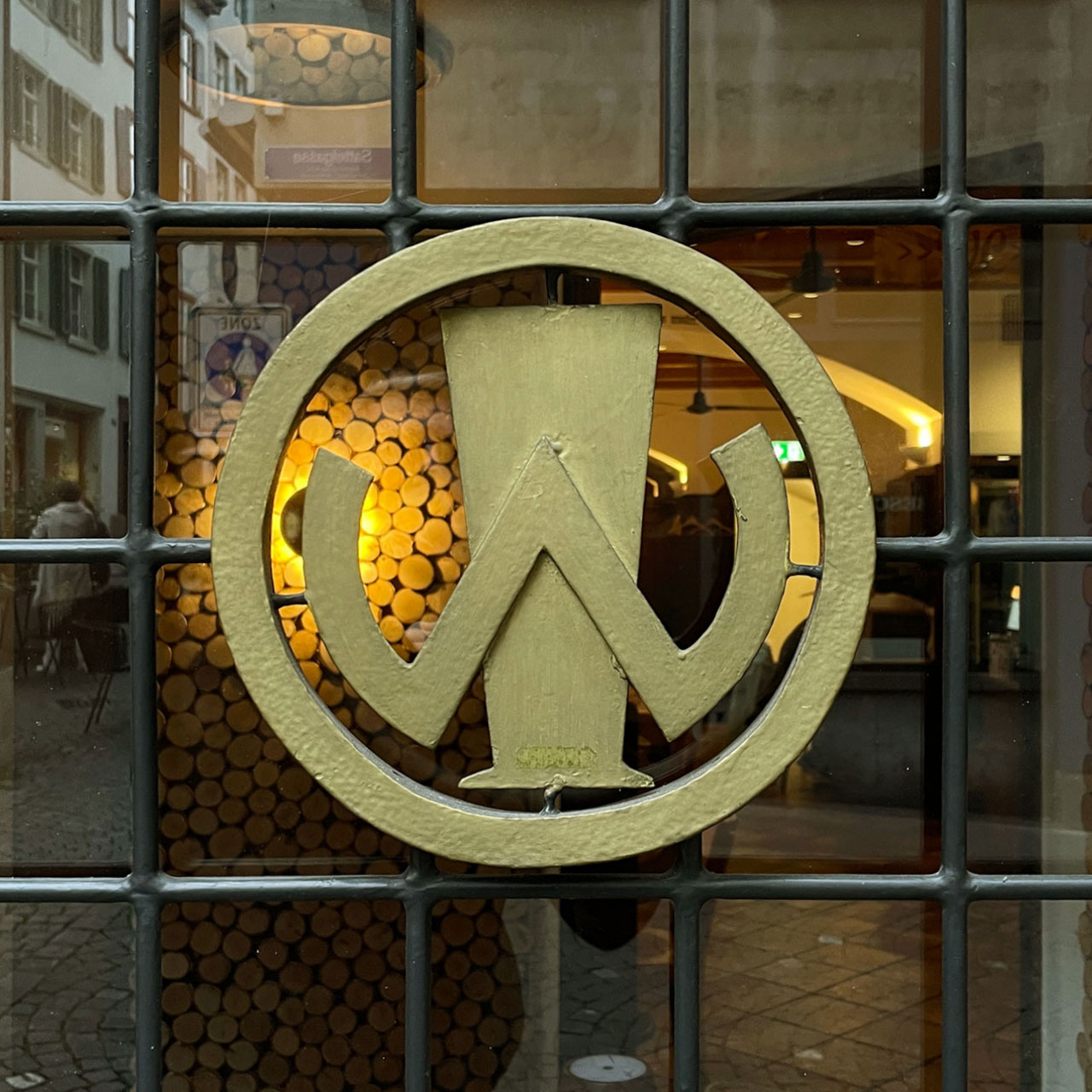 Das Monogramm mit dem formfolgend gerundeten W und dem stilisierten Bierglas steht für den Namen der Brauerei »Zum Warteck« (später »Warteck Brauerei & Getränke AG«). Der Großneffe des Inhabers ließ nach der Übernahme der Leitung im Jahr 1913 ein neues Gebäude für das Gasthaus errichten. Nach seinem unerwarteten Grippetod im Jahr 1918 führte zunächst seine Witwe zehn Jahre lang das Geschäft weiter, 1928 verkaufte sie das Lokal dann an die genannte Brauerei, die seither das Gebäude verwaltet und dessen Gaststätte verpachtet. Inzwischen gehört die Brauerei zur Feldschlösschen Getränke AG, die ihrerseits seit 2000 Teil der internationalen Carlsberg-Gruppe ist – der nach eigenen Angaben viertgrößten Brauerei-Gruppe weltweit und Marktführer in Nord- und Osteuropa.