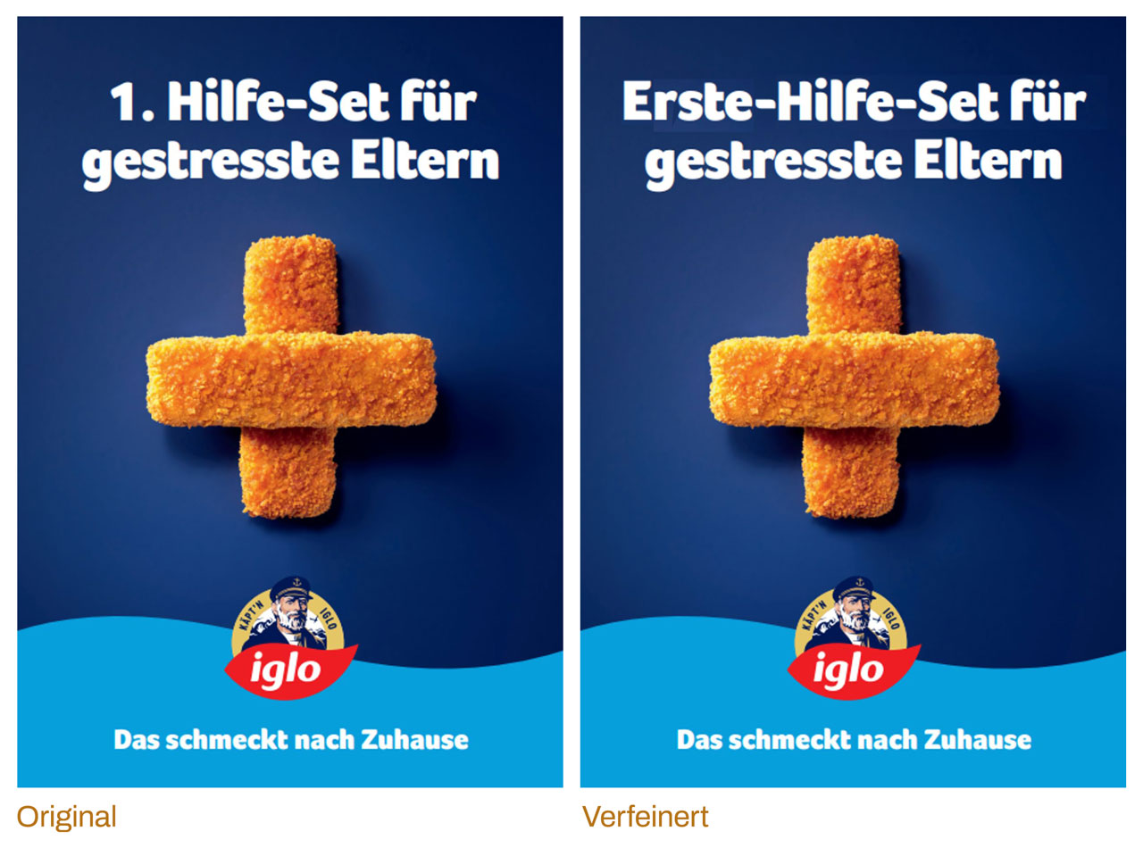 Die für die Texte im Plakat und auf der Iglo-Website als Corporate Font zum Einsatz kommende Schriftart ist die »Foco« (Fabio Luiz Haag/Dalton Maag).