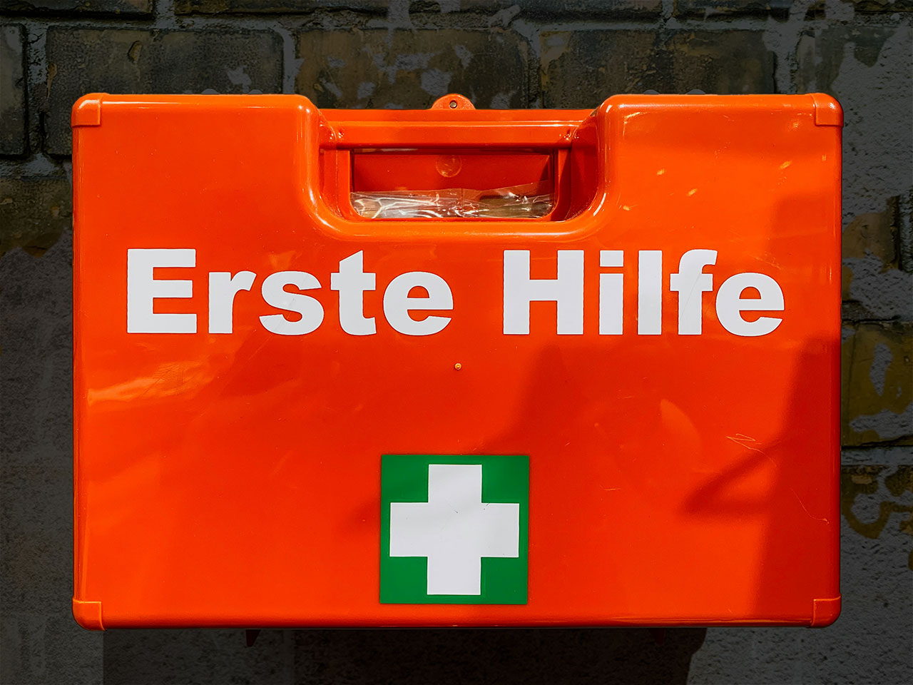 Der textlich ausgeschriebene Begriff »Erste Hilfe« ohne Ordinalzahl ist auf Beschilderungen und Kennzeichnungstafeln, damit beschrifteten Verbandskästen (s.u.) sowie in regelbasierten Dokumenten zu Unfallschutz und Versorgung akut erkrankter oder verletzter Personen die allgemein gebräuchliche Schreibweise. Insofern ist es auch die am häufigsten im Alltag wahrgenommene und von den meisten Menschen »gelernte« Erscheinungsform dieses Begriffs, die aufgrund dieser Prägung innerhalb kürzester Zeit erfasst und begriffen wird. Man findet zwar ohne weiteres mit dem Suchbegriff »1. Hilfe« im Netz jede Menge Produkte und Informationen, zudem auch Websites zum Thema, in deren URL die 1 auftaucht – etwa den Online-Kursanbieter meine1hilfe.de –, aber die Schreibweise mit Ziffer ist eindeutig seltener, weniger vertraut und braucht daher tendenziell länger, um verstanden zu werden.