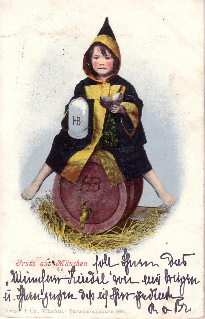 - Künstler-Ansichtskarte »Münchner Kindl trinkt eine Mass Bier« (1920)