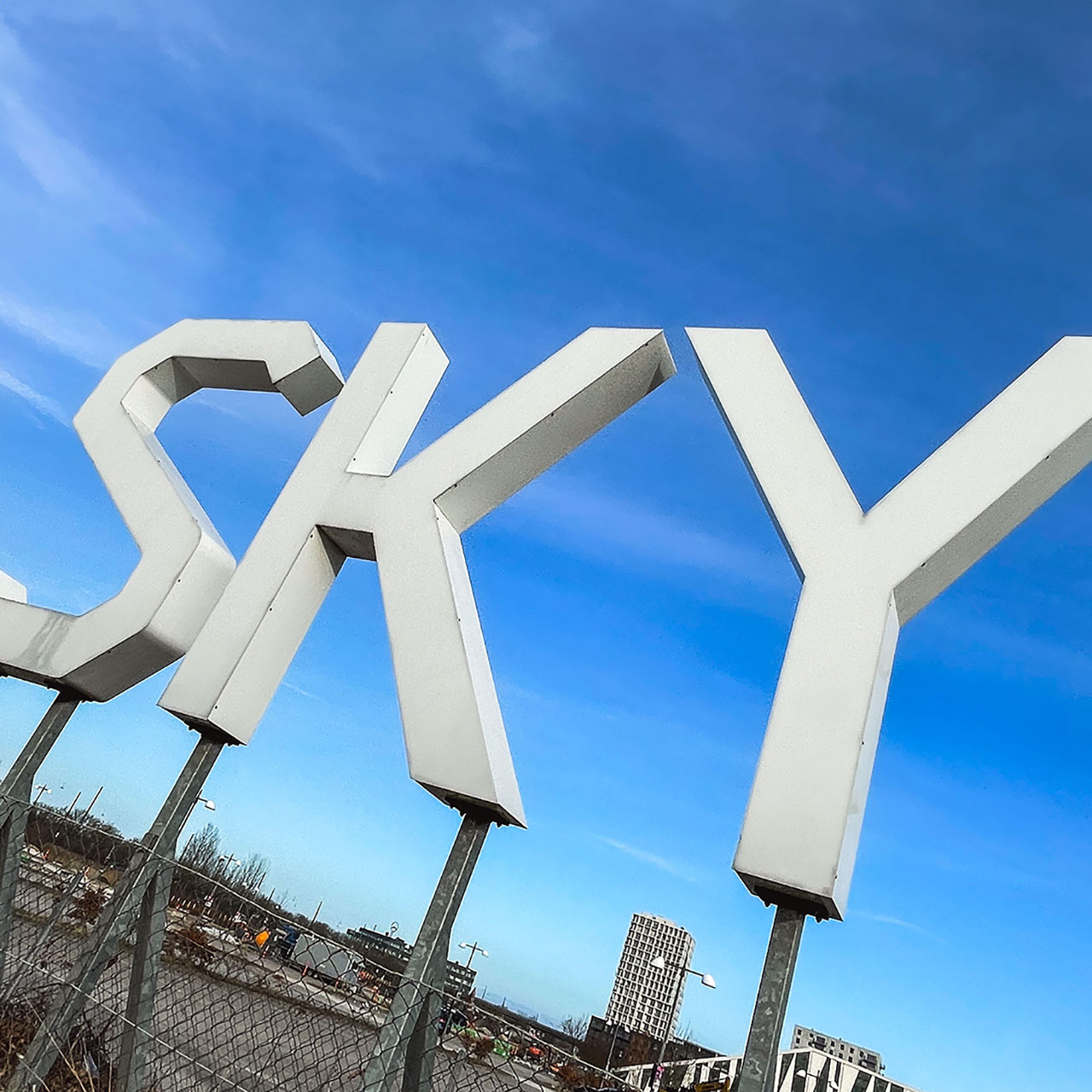 Der Name des gesamten Bauvorhabens ist identisch mit dem Stadtviertel – Enghave Brygge Syd – und an dem Bauzaun war auf großen schwarzen Bannern u. a. auch das übergreifende Logo plakatiert. Ich finde, die fetten, modernen Grundformen kontrastieren ansprechend mit den Freiräumen, die durch das Weglassen von Buchstabenelementen entstehen. Weil mir die Wortmarke so gut gefiel, habe ich sie fotografiert. Das Design stammt vermutlich von der auf Immobilienprojekte spezialisierten, aus Schweden stammenden Marketingagentur Make Moves AB mit Büros in Malmö, Kopenhagen und Odense.