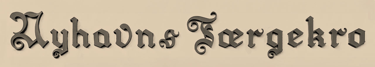 Die Ursprünge des Schriftzuges an der Fassade zu ergründen ist nicht ganz einfach. Ungewöhnlich sind daran die spiraligen Verzierungen an den Initialen sowie an y, s, und g. Eine ähnliche Form des y findet sich auf der Seite eines gedruckten Buches aus dem Jahr 1750. Auch der ausladende gebogene Aufstrich am v ist eher untypisch für frühe gebrochene Schriften, deren Formen auf dem Duktus einer Breitfeder beruhen. Erst gegen Ende des 18. Jahrhunderts, mit dem Aufkommen des Klassizismus, machten sich Schriftgestalter daran, die Formen der gebrochenen Schriften zu modernisieren. Der Drucker Johann Friedrich Unger aus Berlin entwickelte zwischen 1785 und 1794 mit der »Unger-Fraktur« eine solche Schrift, die sich bereits deutlich von den historischen Buchstabenformen löste und deren strenge Anmutung in Richtung modernerer Antiqua-Schriften öffnete. Bis Anfang des 20. Jahrhunderts entstanden nach und nach weitere »modernisierte« Frakturschriften in diesem Sinne, so z. B. die »Aristokrat« (Albert Auspurg, 1912), die eine entfernte Ähnlichkeit zu dem Schriftzug des Kopenhagener Wirtshauses zeigen. Auch üppiger verzierte Varianten, auch »Kanzleischriften« genannt, entstanden vielfach in dieser Zeit.