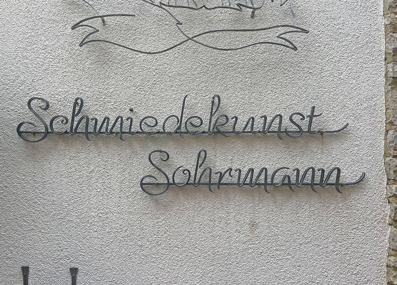 Das Motto der beiden Motive des heutigen typographischen Montagsbonbons lautet »Metall«. Die meisten (längeren) dreidimensionalen Schriftzüge an Geschäften, Gebäuden oder anderswo im öffentlichen Raum sind wohl aus Kunststoff angefertigt, wenige aus Holz, einige ältere Neonbeschriftungen aus Glas – und dort, wo Metall zum Einsatz kommt, sind die Zeichen mittlerweile ausgelasert oder maschinell gefräst/gestanzt. Wesentlich aufwendigere, von Hand gefertigte Metall-Schriftzüge findet man meiner Erfahrung nach relativ selten.