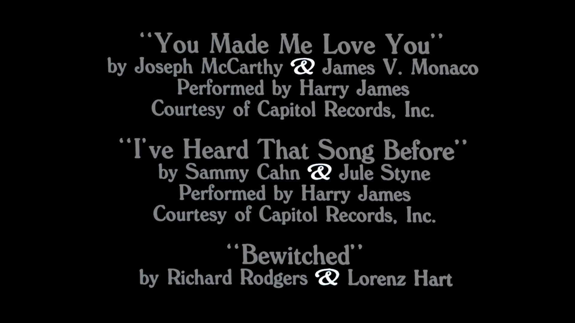 Ein Symbol aus dem gängigen Zeichensatz, bei dem mir der Variantenreichtum ebenfalls besonders auffällt, ist das »Et«-, »Und«- oder »Ampersand«-Zeichen (&), auf das ich beim ersten typographischen Fundstück im Neuen Jahr das Augenmerk lenken will. Aufgefallen war mir das Zeichen kurz vor Silvester im Abspann des Woody-Allen-Films »Hannah und ihre Schwestern«, wo es insbesondere im Rahmen der Auflistung der im Film gespielten Musikstücke ins Auge fällt. Die Schriftart mit dieser wunderbar geschwungenen, ausladend-eleganten Interpretation des Ampersand ist sehr wahrscheinlich eine Condensed-Variante der »Windsor« (Originalentwurf von Eleisha Pechey für Stephenson Blake, um 1904).