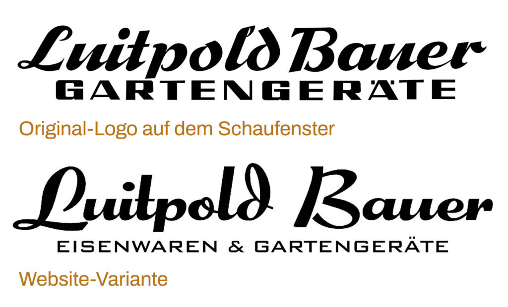 Update: Nachträglich kam noch ein interessantes Rechercheergebnis hinzu. Als ich noch weiter suchte, um das Eröffnungsdatum des Ladengeschäfts an der heutigen Adresse herauszufinden, fiel mir auf der rudimentären Website des Unternehmens auf, dass dort eine »modernere« Variante des Logos am Seitenkopf eingesetzt wird. Die Unterzeile erkannte ich sofort als die populäre »Science-Fiction-Schrift« mit dem Namen »Bank Gothic« (Morris Fuller Benton für ATF, 1930). Die Schreibschrift hingegen ist unter mehreren Namen in Umlauf: Die Ur-Version wurde offenbar vom deutschen Schriftgestalter Erich Mollowitz entworfen und von der Schriftgießerei J. D. Trennert & Sohn in Hamburg-Altona unter dem Namen »Forelle« herausgebracht. Ein zweiter Name für die gleiche Schrift, jedoch verlegt von der Schriftgießerei C. E. Weber im selben Jahr, ist »Rheingold«. 1954 interpretierte das britische Schrifthaus Stephenson Blake in Sheffield die Schrift und brachte sie in zwei Schnitten als »Mercury« und »Mercury Light« heraus. 2010 wurde die Schrift als »Forelle Pro« digitalisiert und ausgebaut von RMU (Ralph Michael Unger Typedesign) und kurz zuvor im Jahr 2007 hat auch der Designer Nick Curtis (Nick’s Fonts) seine Version davon veröffentlicht und nennt sie »Jaunty Gent«. Es gibt zwar noch einige andere freie und kostenpflichtige Versionen, aber die vorgenannten sind wohl die bedeutsamsten.