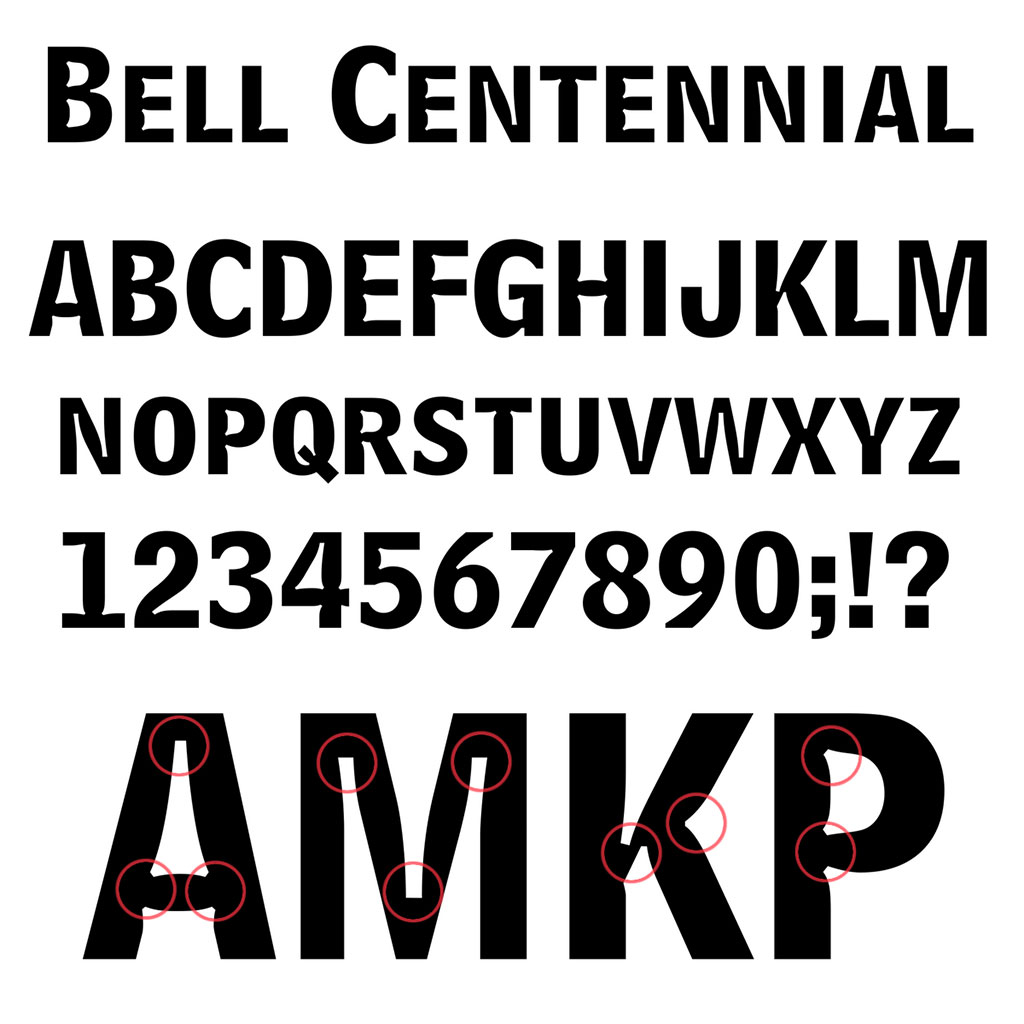 Eine der bekanntesten Schriften mit diesem Charakteristikum ist »Bell Centennial«, 1975–78 von Matthew Carter für die US-Telefongesellschaft AT&T gestaltet (Bild 3). In Bild 4 habe ich einmal simuliert, was beim Druck einer Schrift durch »Ink Traps« geschieht. Ihre Formgebung ist sozusagen eine vorweggenommene Fehlerkorrektur. Genial, oder?