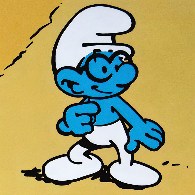 Meine spontane Assoziation dazu waren allerdings zwei Gruppen von Comic- bzw. Zeichentrickfiguren. Mich erinnern die abgerundeten Zipfel an den Buchstaben wahlweise an die Mützen der Schlümpfe des belgischen Comiczeichners Pierre Culliford alias Peyo oder an die Puschen der Figuren der Sieben Zwerge aus dem Walt-Disney-Zeichentrickfilm »Schneewittchen«. Und immerhin hat zumindest die zweite Referenz etwas mit Schuhen zu tun. 🤓 🔠 🥾